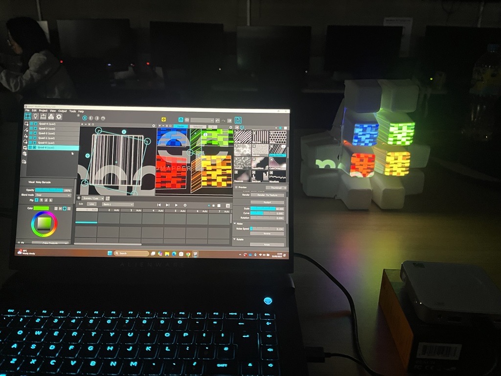 This week, we had a chance to experiment with MadMapper, a powerful tool for projection mapping that allows animations to be projected onto real-world surfaces using a projector. I spent time getting familiar with the software and focused on applying glitch effects, testing how these could highlight parts of my work through projection. I tried projection mapping for the first time. It was interesting to see how textures can be projected onto a 3D model to add detail without sculpting everything by hand. I’m excited to explore this technique more and see how it can help speed up my workflow while keeping the quality high.